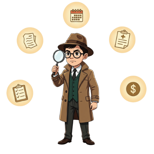 Sherlock Sam turns confusing insurance jargon into real-life clues you can actually solve. With a magnifying glass in hand (and a knack for asking “silly” questions), he helps you spot what most people miss — from vanishing $0 plans to hidden coverage gaps.